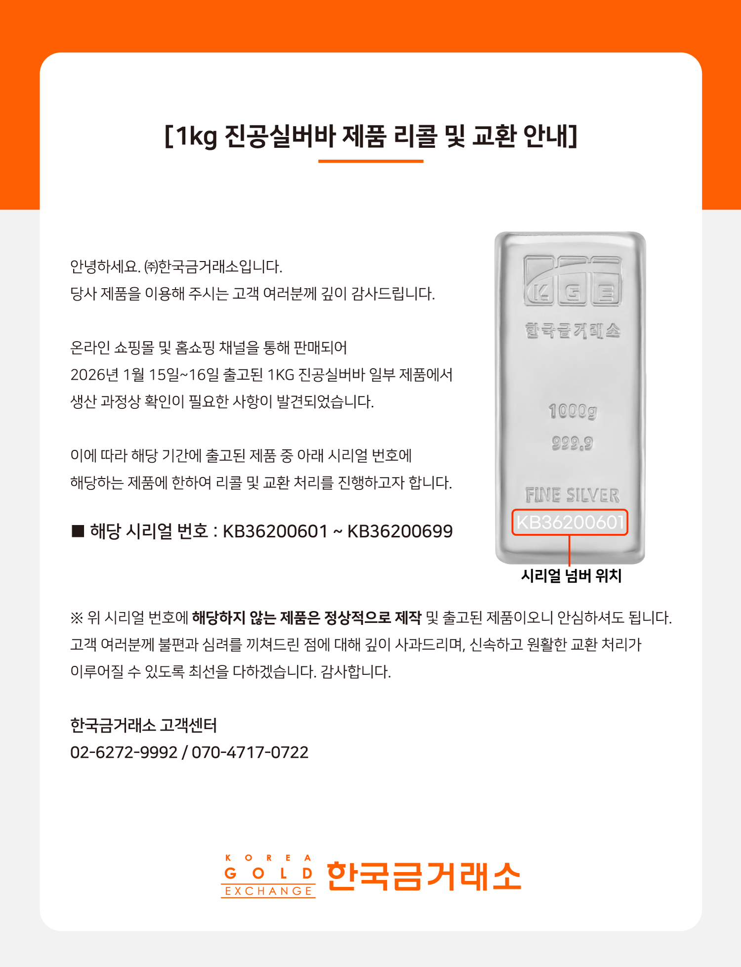 1kg 진공실버바 제품 리콜 및 교환 안내